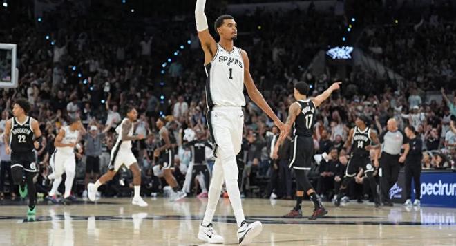 文班亚马31+14+4+3+6破队史纪录!榜眼闪耀抢风头,马刺轻取篮网